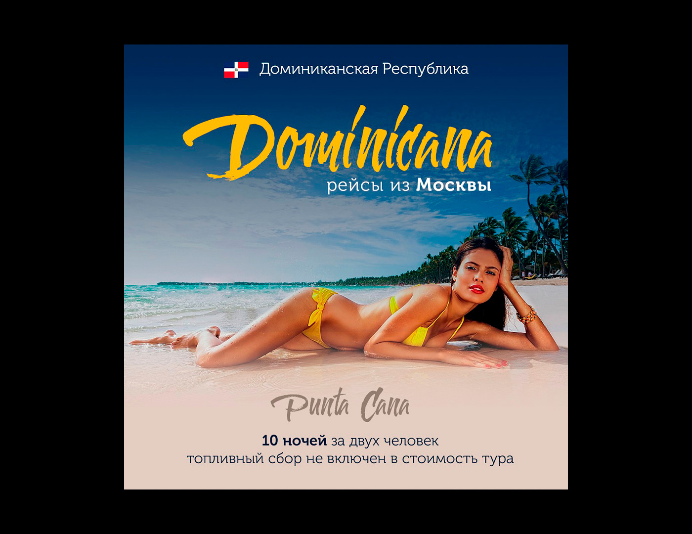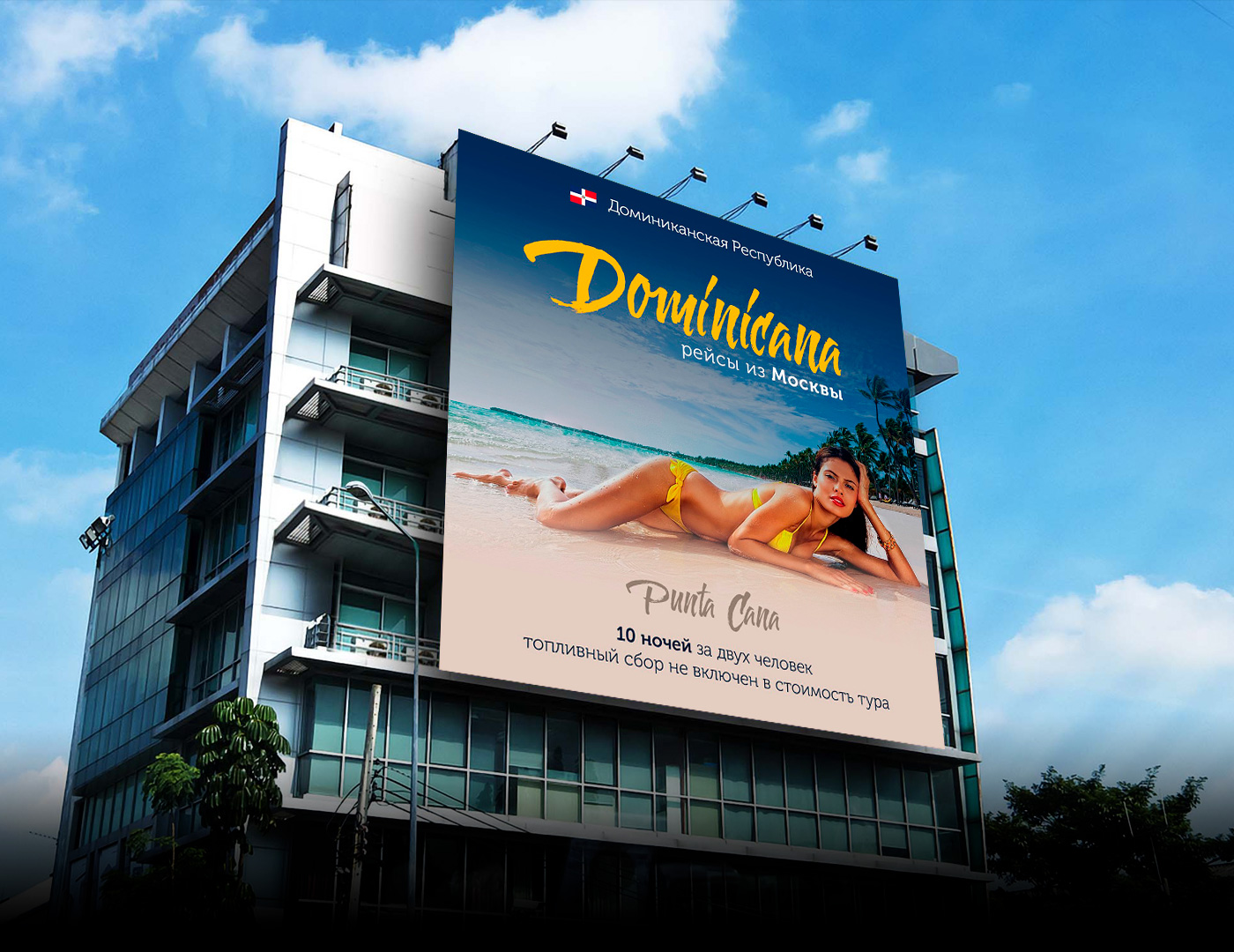 Nika-Russia разработала яркий и привлекательный дизайн для билбордов, которые будут использоваться в рекламной кампании туристических туров в Доминиканскую Республику.