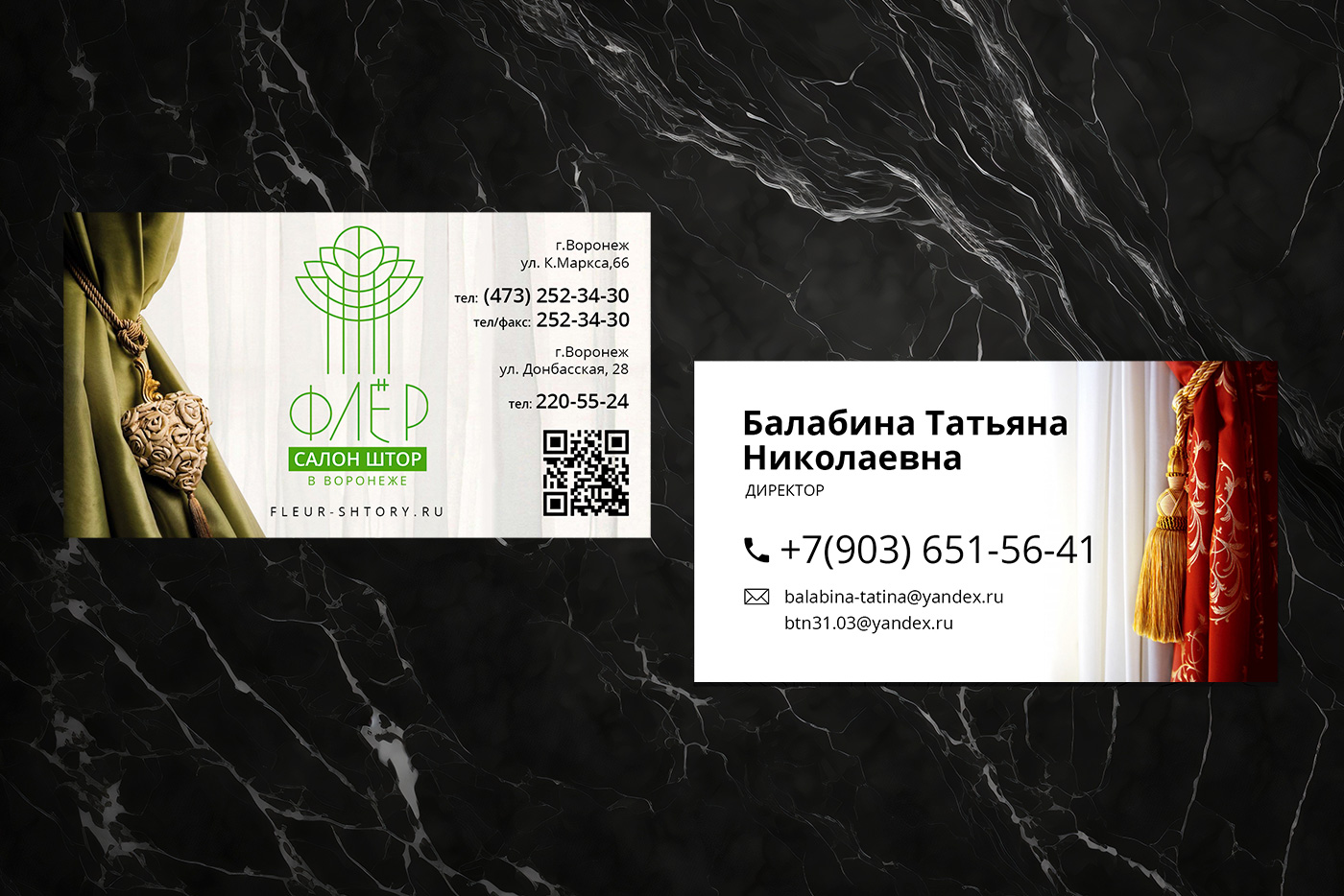 Nika-Russia разработала стильные и привлекательные визитки для салона штор Fler. Мы учли все особенности бренда Fler и создали дизайн, который подчеркивает его уникальность и профессионализм. Для начала, мы провели исследование рынка и изучили конкурентов, чтобы понимать, какие тренды сейчас актуальны в индустрии штор. Затем мы разработали несколько вариантов дизайна, учитывая предпочтения заказчика и современные тенденции.