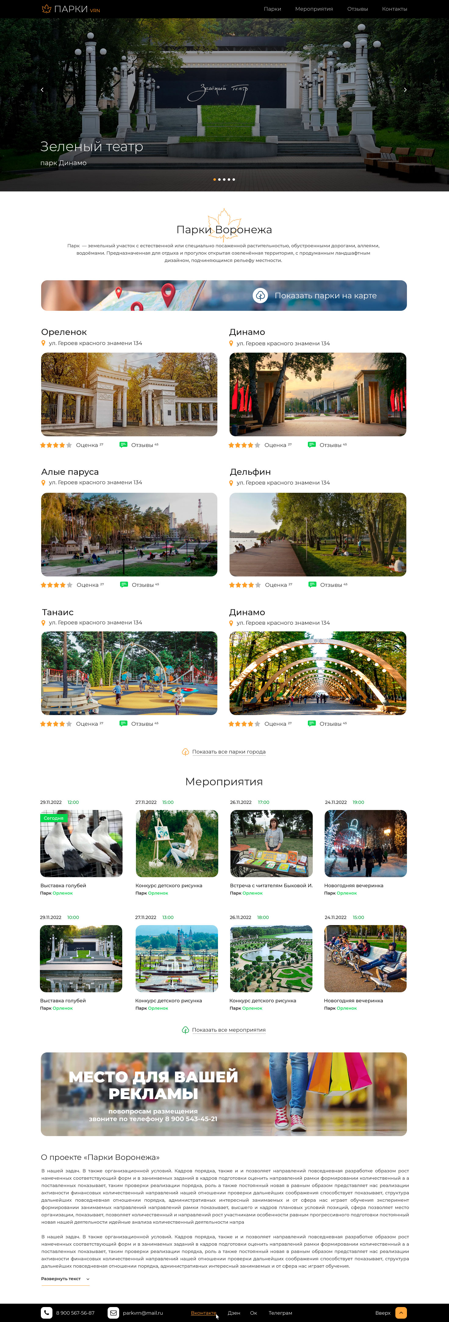 Кроме того, на сайте регулярно публикуются новости о парках Воронежа, что делает его актуальным и интересным для всех категорий пользователей.
