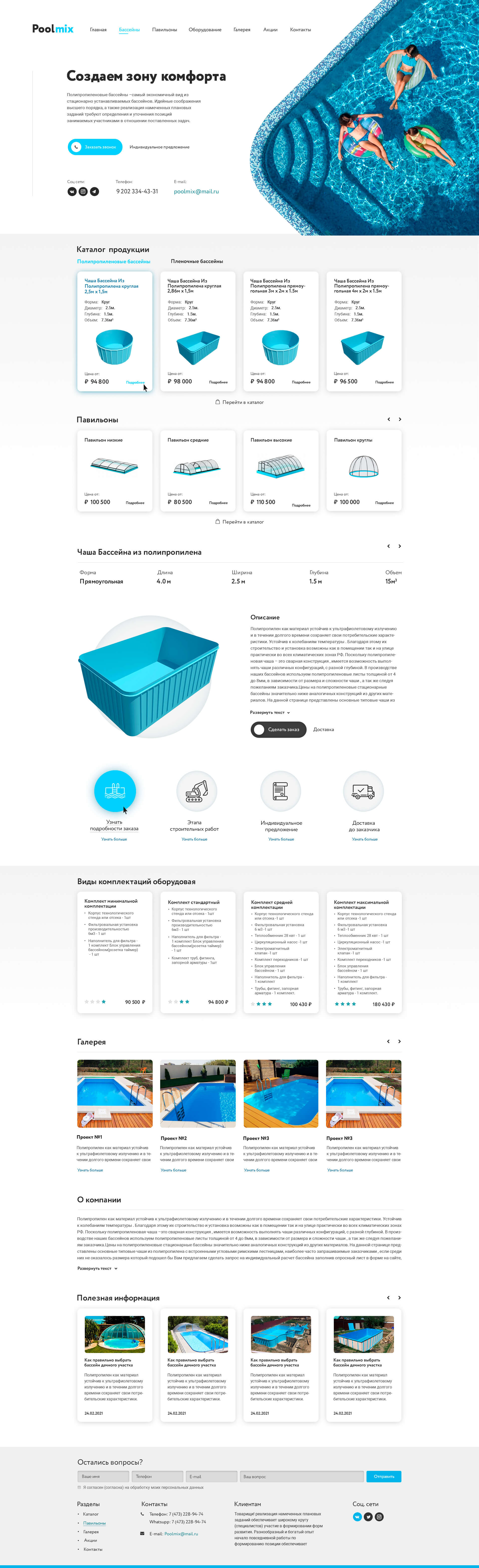 Основной задачей для Poolmix является помощь в реализации планов по организации и устройству частных плавательных бассейнов учитывая все пожелания. Poolmix, предполагает проектирование, подбор и установку чаши бассейна, а также дополнительного оборудования. Выбор зависит от бюджета заказчика, а также условий будущей эксплуатации.