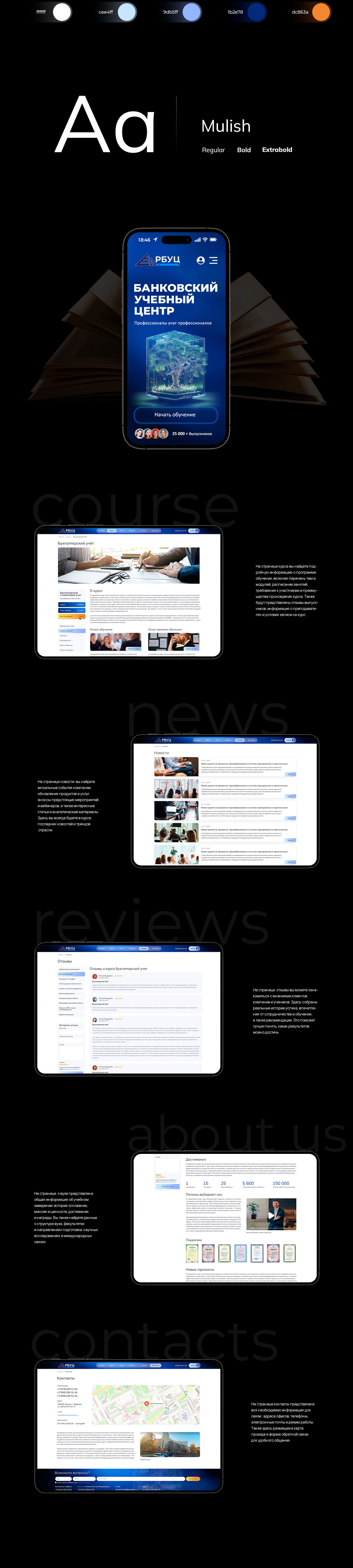 Разработали дизайн и создали адаптивный сайт-каталог для Регионального банковского учебного центра в Воронеже. РБУЦ был основан в 1996 году для подготовки и переподготовки банковских специалистов. С момента основания РБУЦ стремился к высокому качеству обучения, сотрудничая с такими партнерами, как Международная Финансово-Банковская Школа (ММФБШ, Москва) и Институт Экономического Развития (ИЭР). Благодаря этому сотрудничеству центр получил доступ к передовому международному опыту в банковском и бизнес-образовании, а также к высококвалифицированной экспертной поддержке.